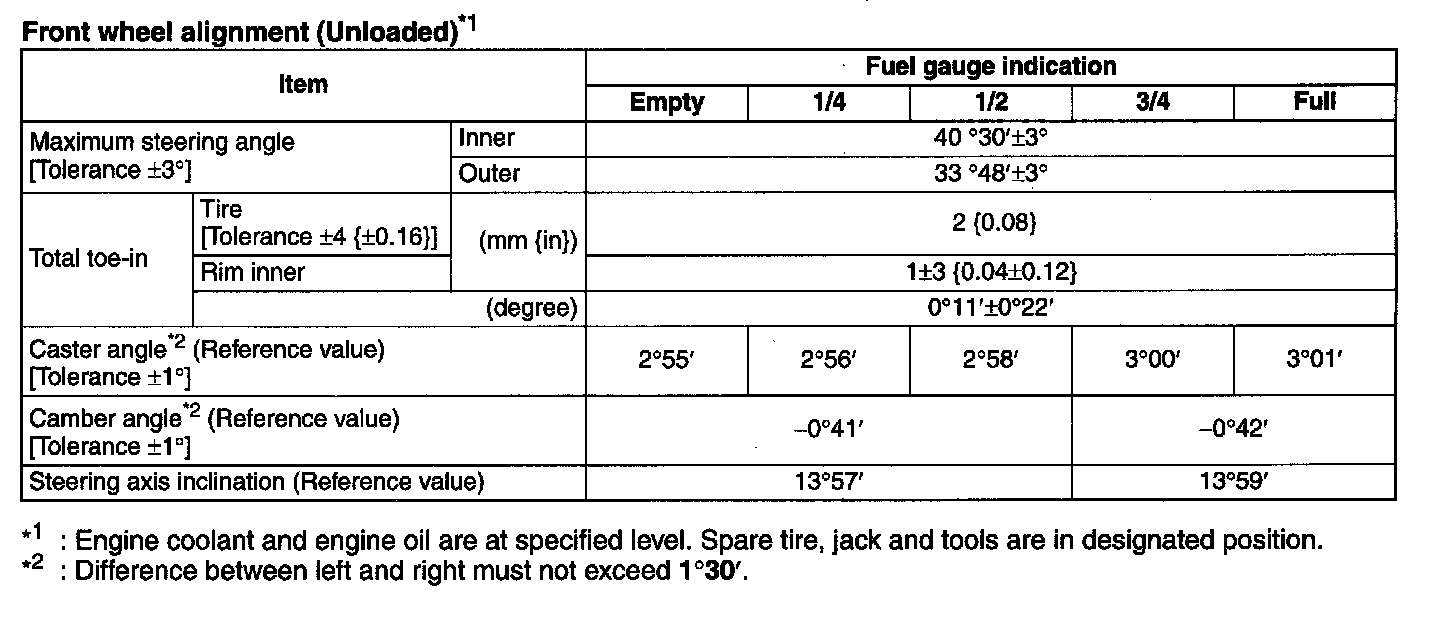 Front wheel alignment (Unloaded)