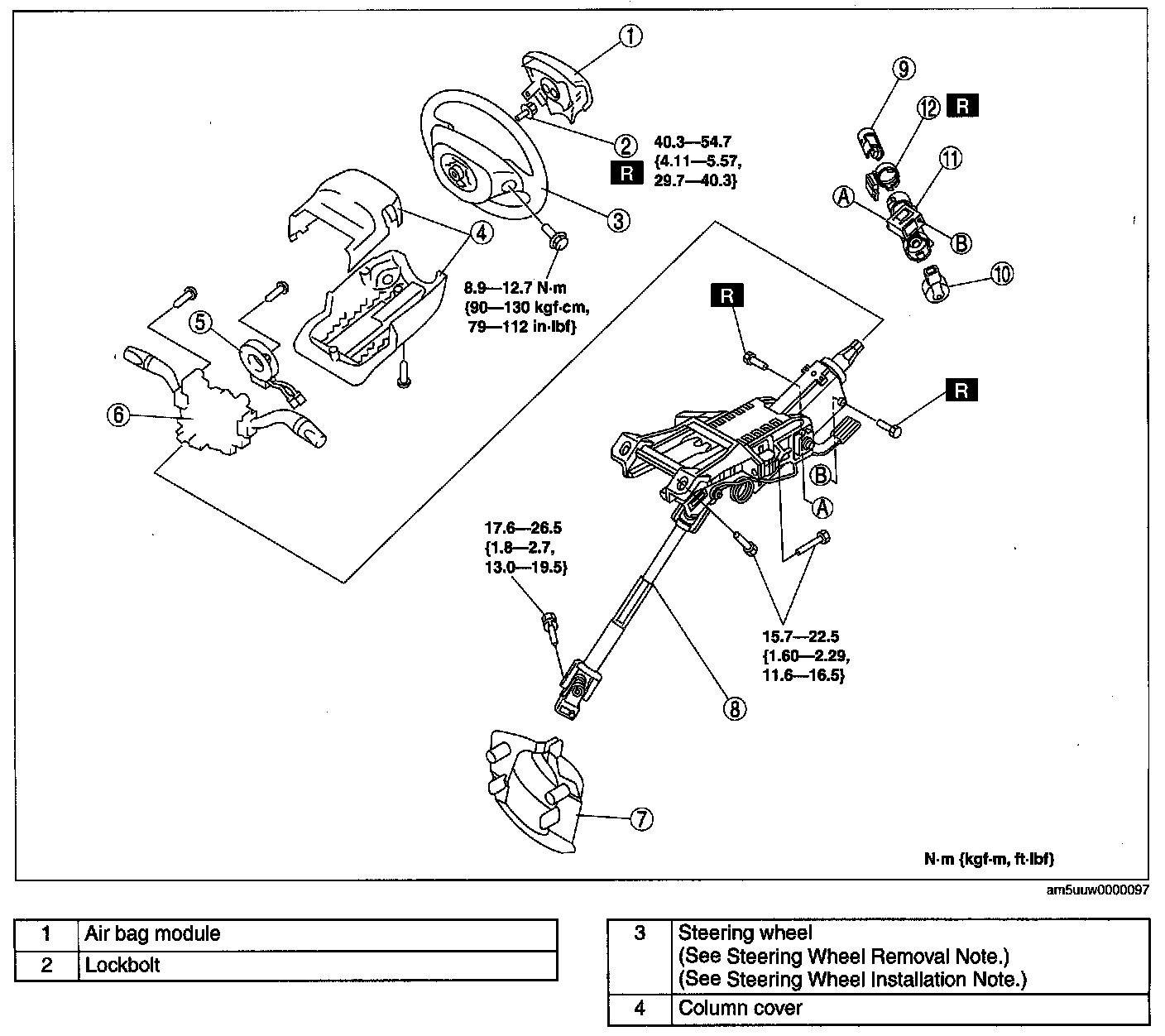 STEERING WHEEL AND COLUMN REMOVAL/INSTALLATIONWarning