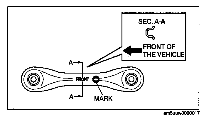 1. Install the rear lateral link with "FRONT" facing the vehicle front and the painted mark facing the inside of the vehicle.
