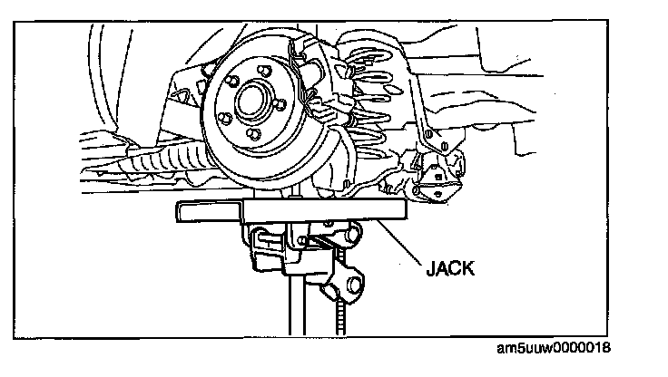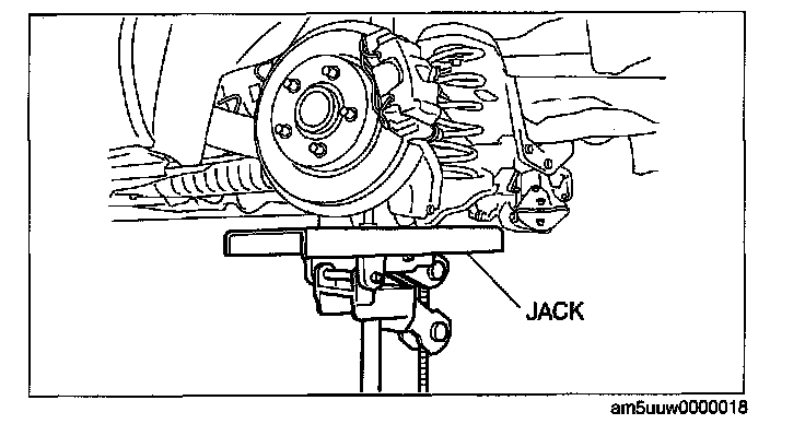 ^ Verify that the trailing link is securely supported by a jack. If the trailing link falls off, it can cause serious injury or death, and damage to the vehicle.