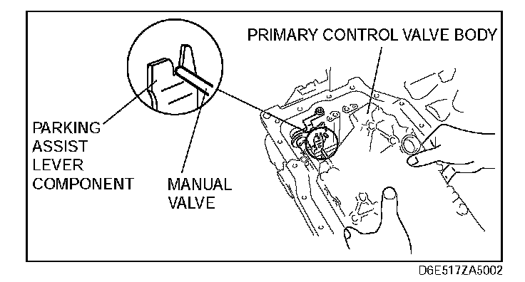 Caution: Make sure that the head of the manual valve and the parking rod are assembled properly. If they are not, the ranges cannot be changed.
