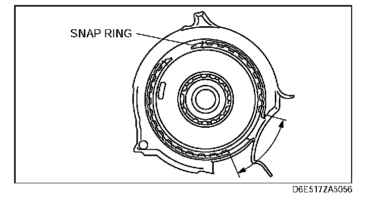 Caution: The transaxle body may be damaged if installed incorrectly. Make sure to install the transaxle body in such a way that the end of the snap ring does not enter the area shown in the figure.