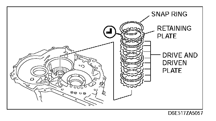 ^ If not within the specification, remove the snap ring and measure its thickness.
