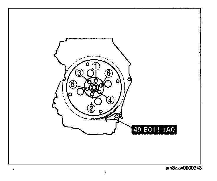 2. Tighten the drive plate mounting bolts in two or three steps in the order as shown in the figure.