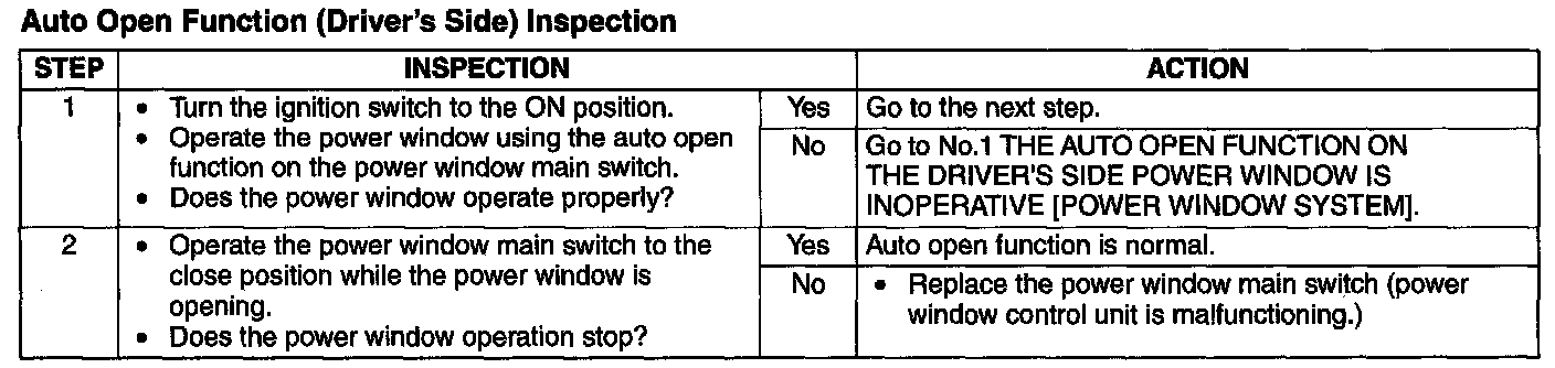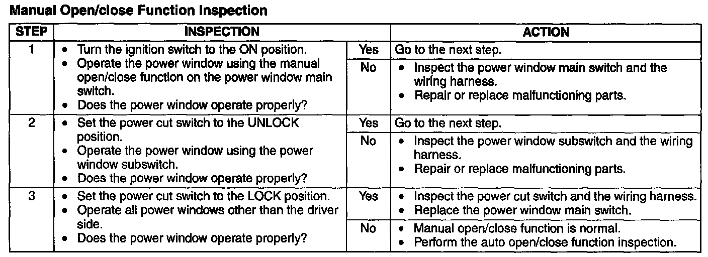 Power Window System Preliminary Inspection
