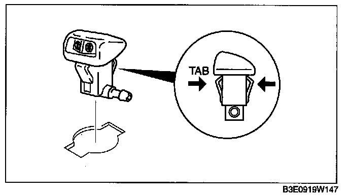 2. Remove the windshield washer hose from the windshield washer nozzle.