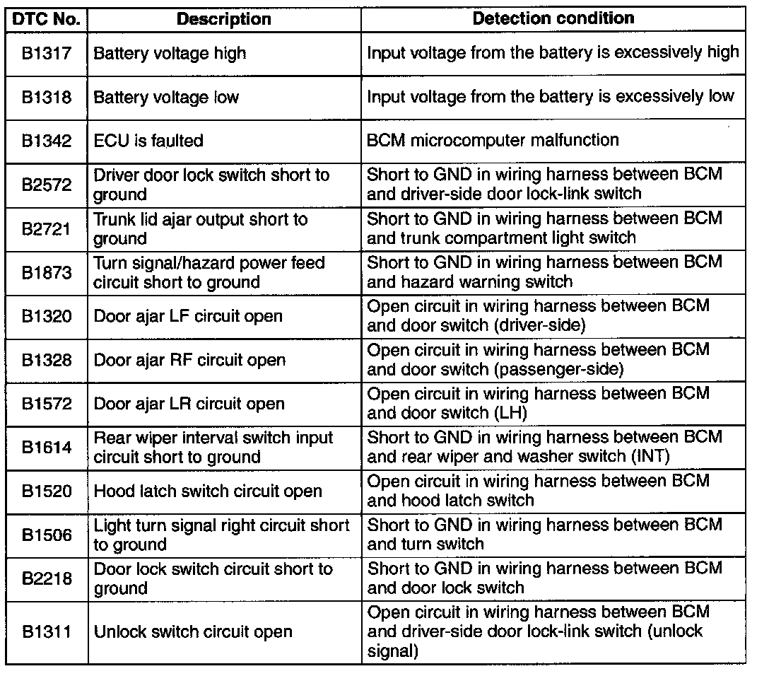 Diagnostic Trouble Code Descriptions