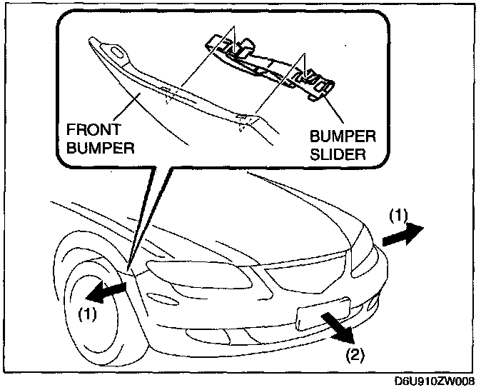 1. Pull the front bumper ends (wheel arch) outward to disengage from the bumper slider.