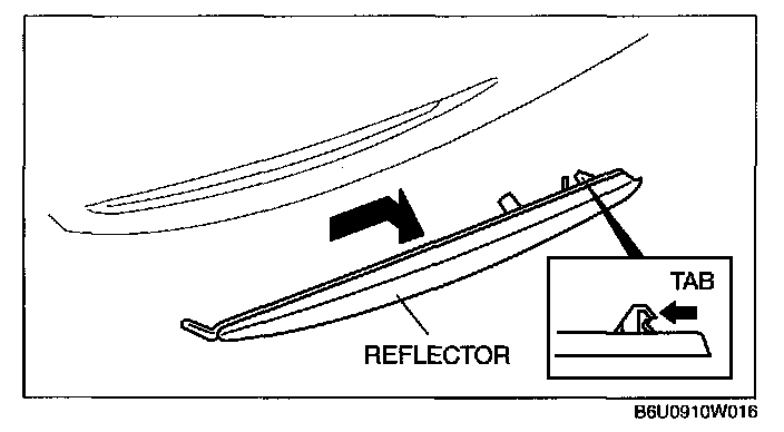 1. Lift the reflector up in the direction of the arrow, then unhook it from the rear bumper.