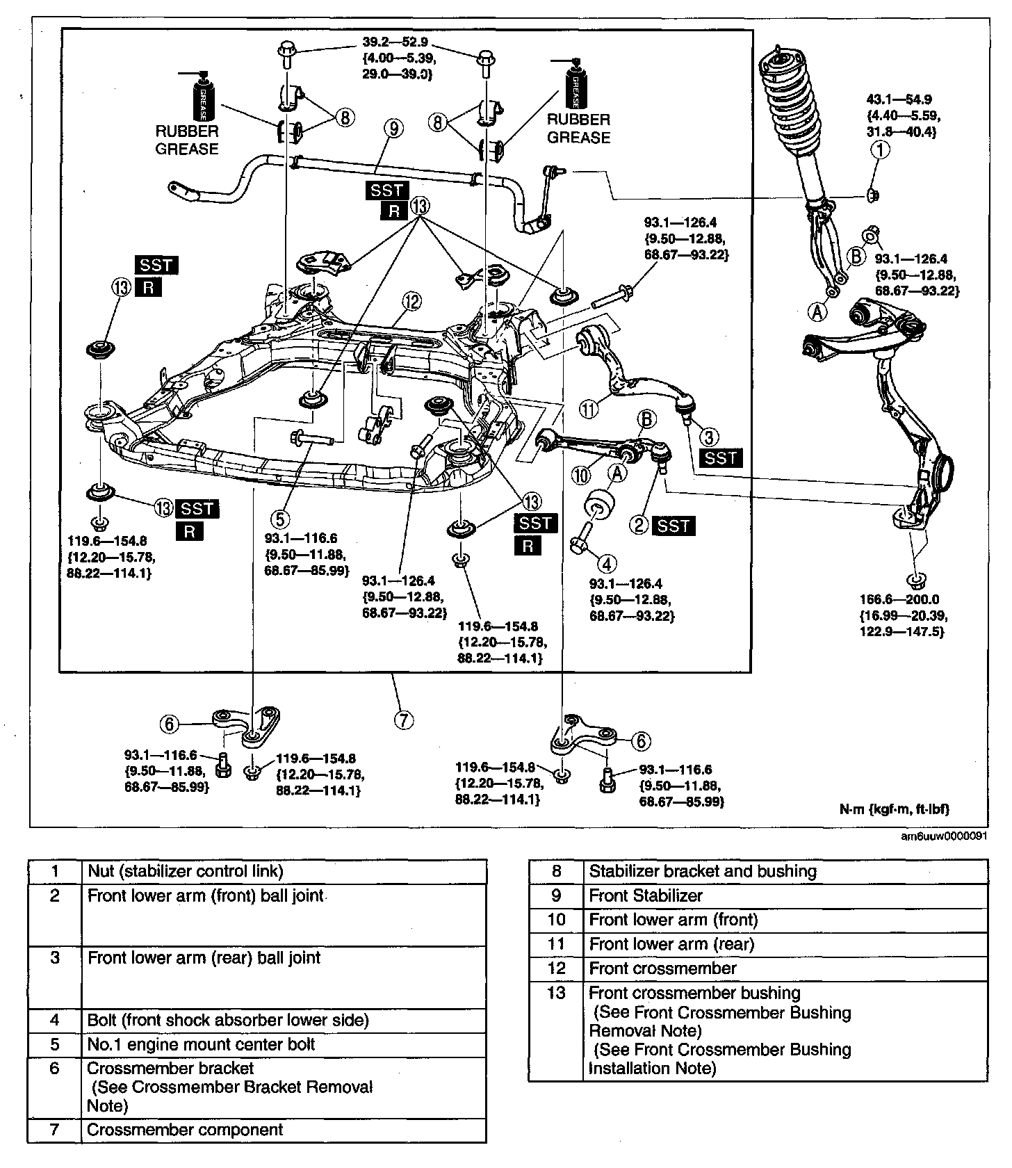 ^ Steering gear and linkage: 74.4-104.8 N-m (7.857-10.68 kgf-m, 54.88-77.29 ft-lbf)