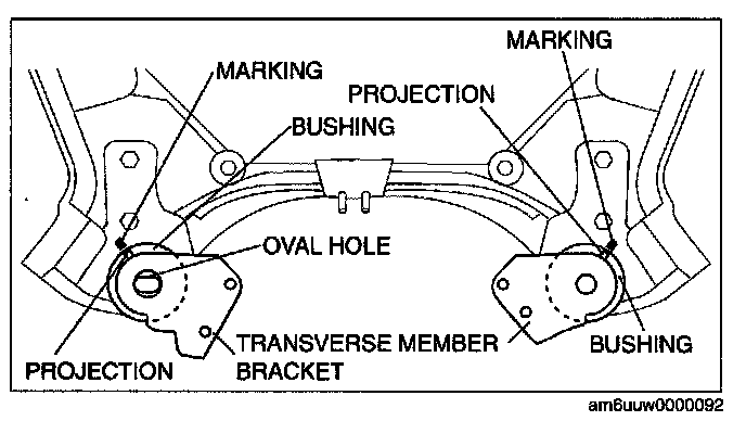 1. Mark the crossmember as shown in the figure (rear upper side only).