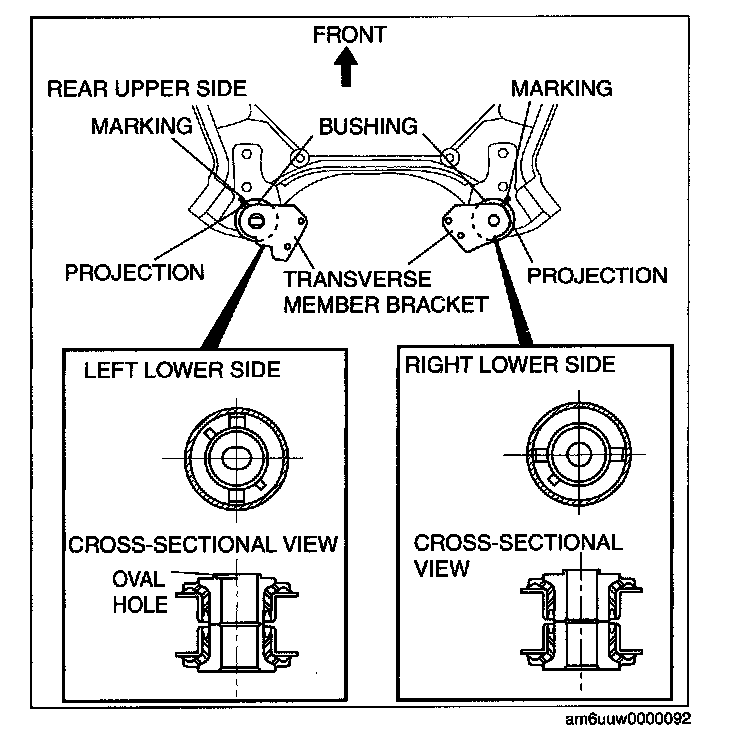 ^ The bushings must be installed with correct orientation as shown below, or increased noise and vibration may result.