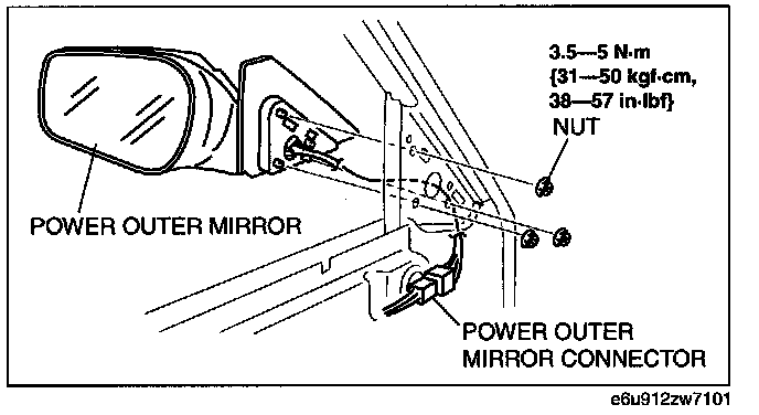 POWER OUTER MIRROR REMOVAL/INSTALLATION1. Disconnect the negative battery cable.