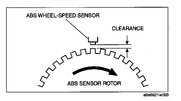 1. Inspect the clearance between the wheel-speed sensor and the sensor rotor.