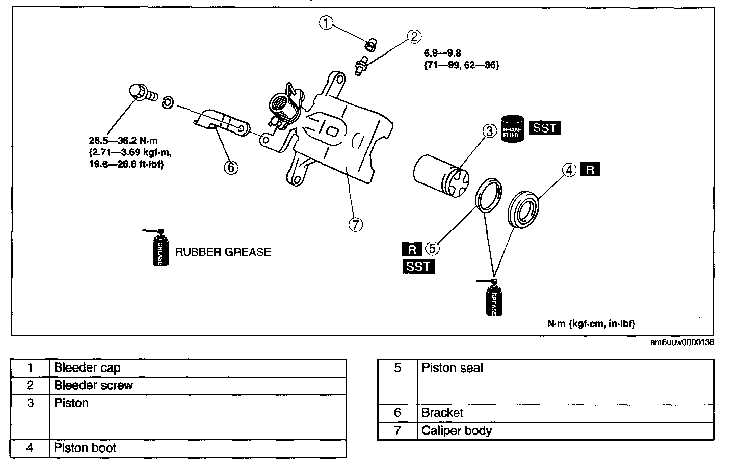 CALIPER (REAR) DISASSEMBLY/ASSEMBLY