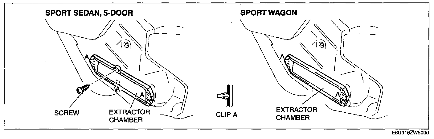 5. Squeeze the clips A and remove the extractor chamber from the vehicle side.