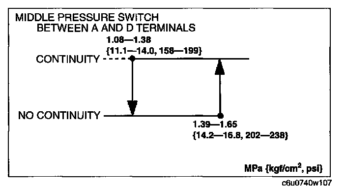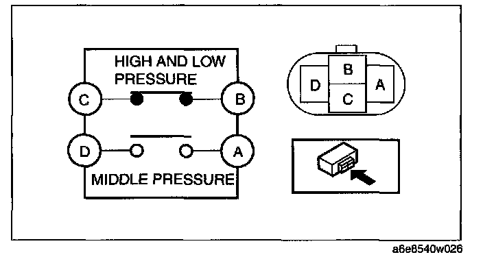 If not as specified, replace the refrigerant pressure switch.
