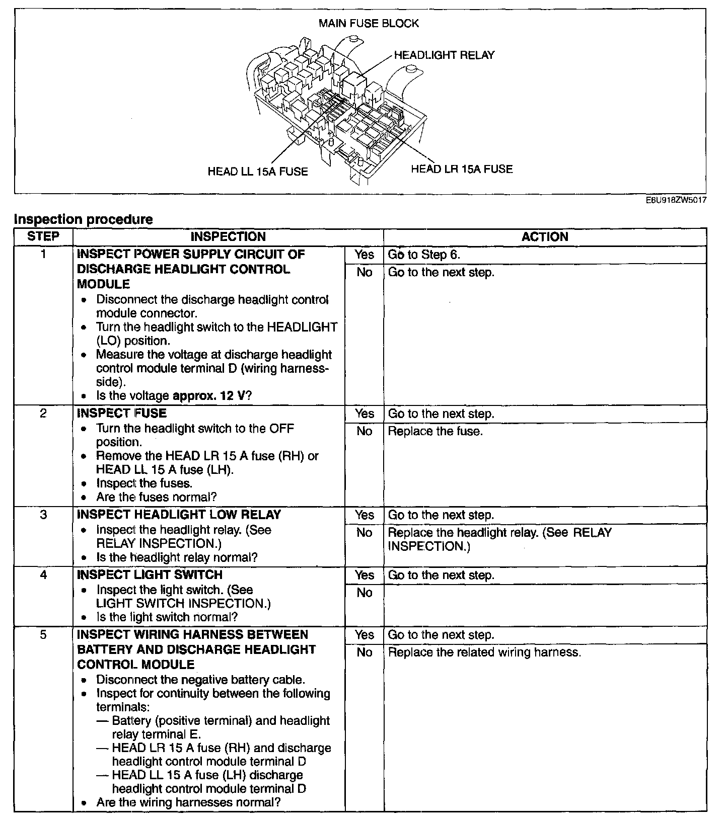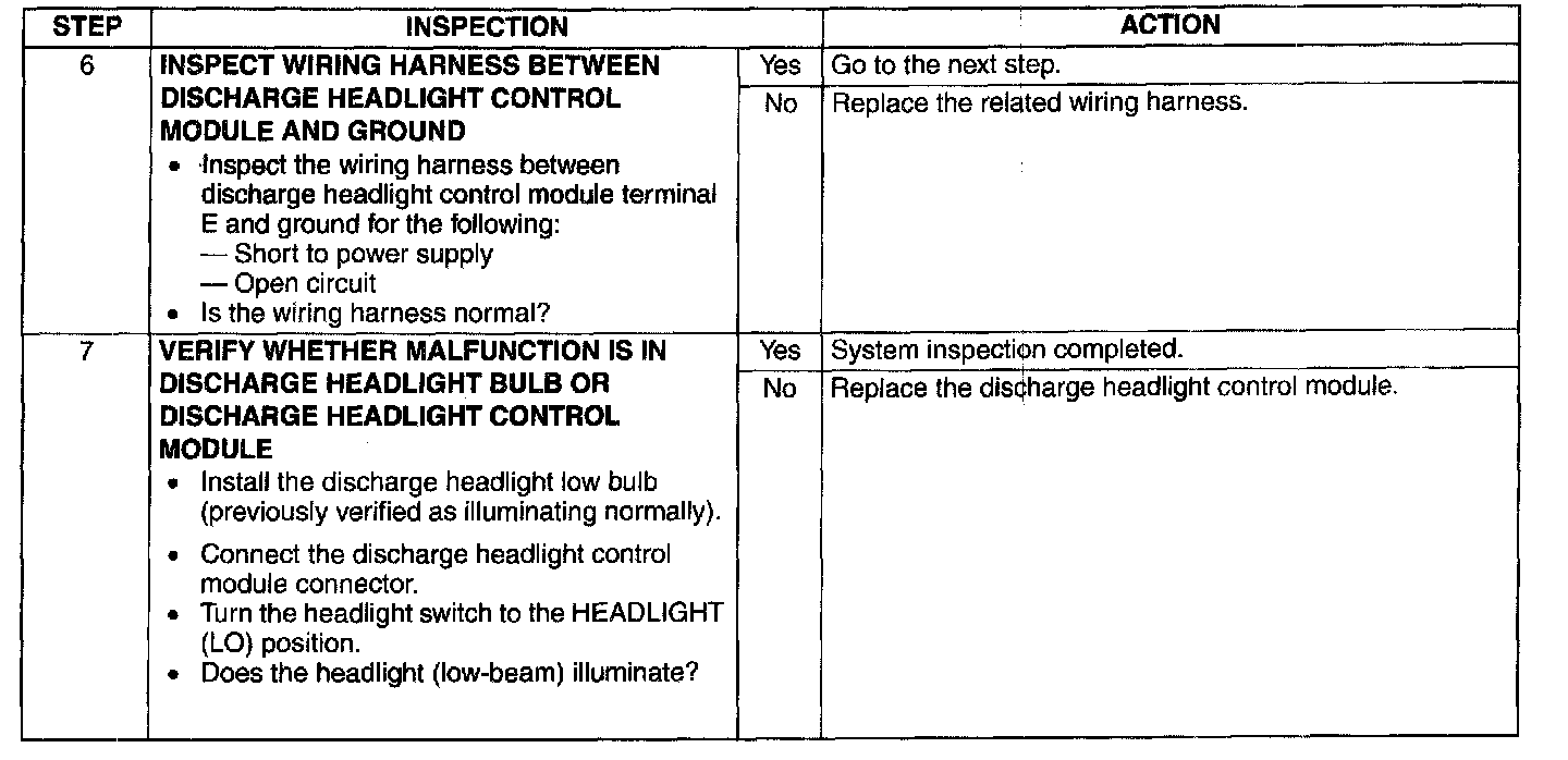 DISCHARGE HEADLIGHT SYSTEM INSPECTIONStep 1-Step 5: