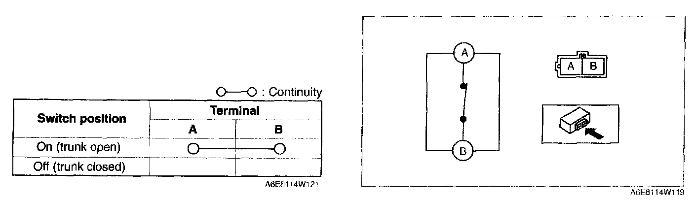 3. Inspect for continuity between the trunk compartment light switch terminals using an ohmmeter.