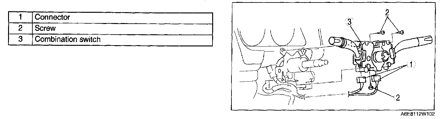 CAUTION: The clock spring is generally not to be removed from the combination switch as may result in a malfunction of the steering angle sensor. However, remove it only when replacing the clock spring as a single unit by referring to CLOCK SPRING REMOVAL/INSTALLATION.
