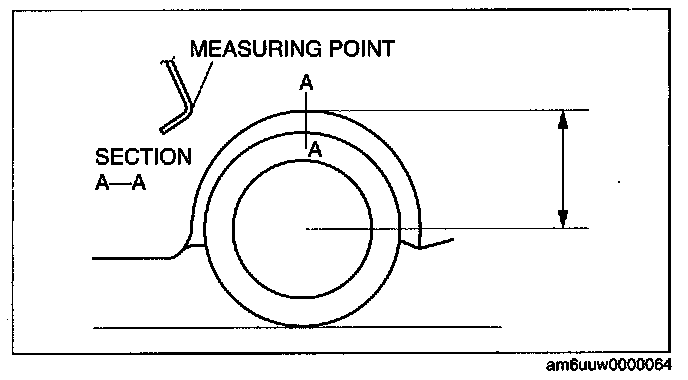 Measure the height from the center of the wheel to the fender brim. The difference between the left and right measurement must not exceed 10 mm (0.39 in).