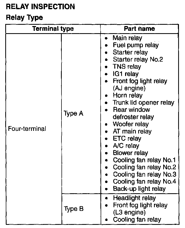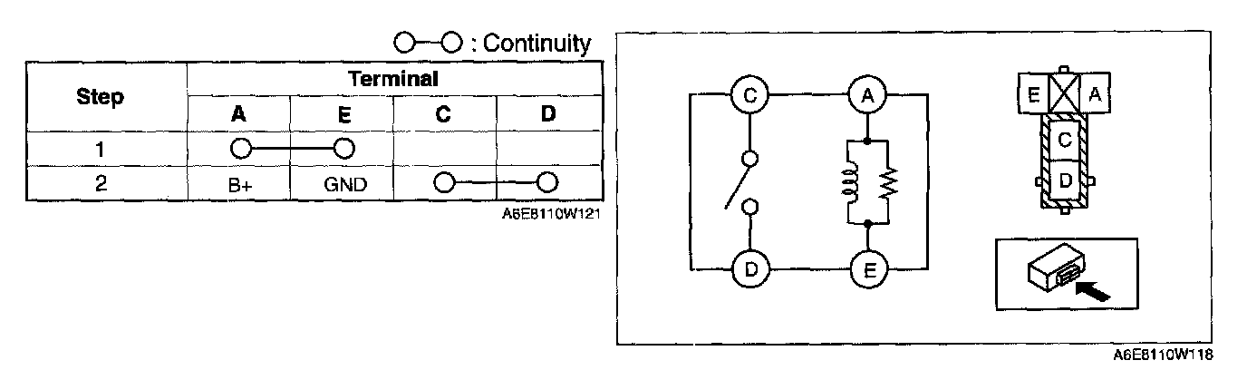 Inspect for continuity between the relay terminals.