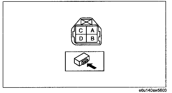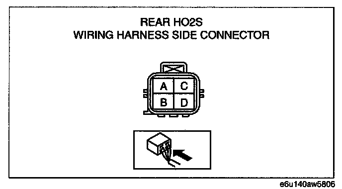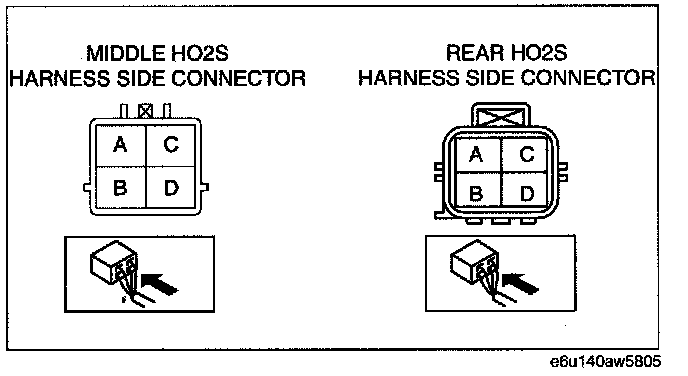 2. Measure the middle/rear HO2S resistance between terminals C and D.