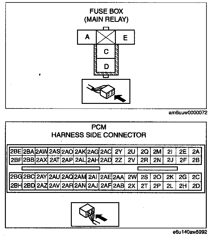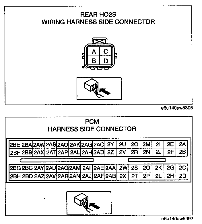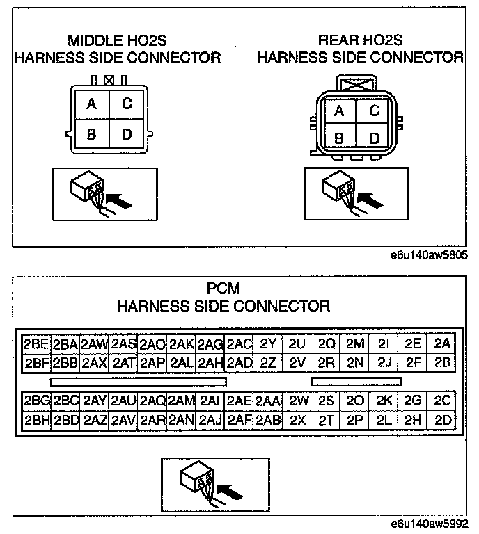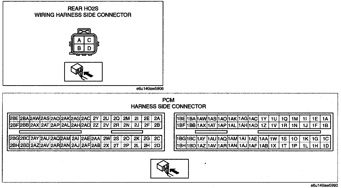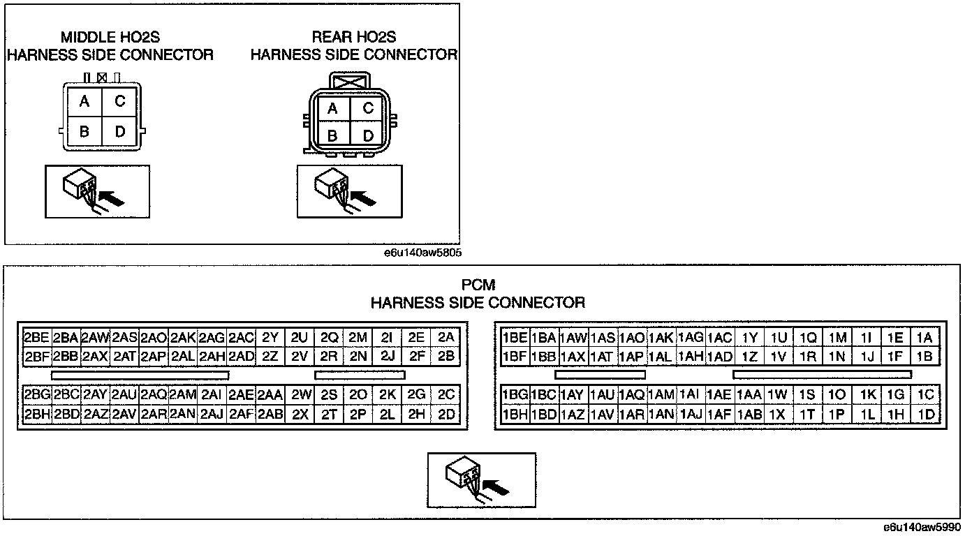 - Front HO2S terminal 2D and PCM terminal 2BG