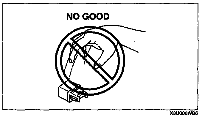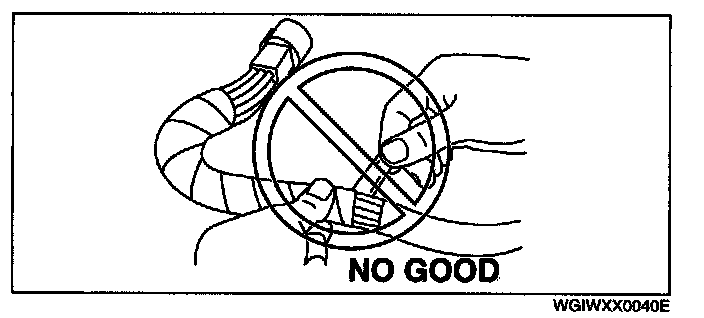 - When a tester is used to inspect for continuity or measuring voltage, insert the tester probe from the wiring harness side.