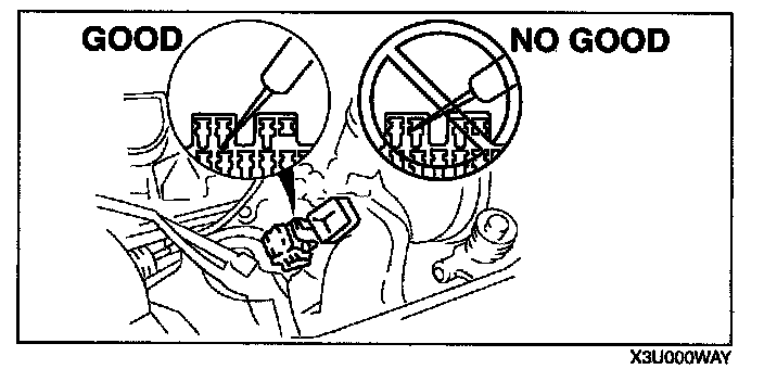 Caution: To prevent damage to the terminal, wrap a thin wire around the tester probe before inserting into terminal.