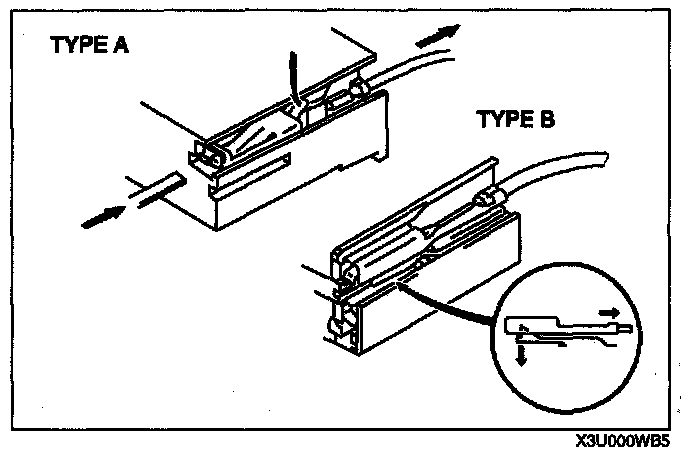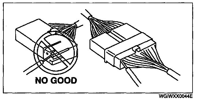 - Inspect the terminals of waterproof connectors from the connector side since they cannot be accessed from the wiring harness side.