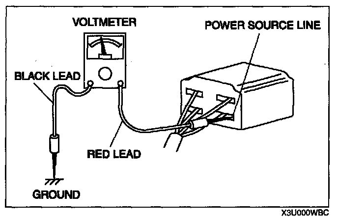 Caution: Do not connect a jumper wire from the power source line to a body ground. This may cause burning or other damage to wiring harnesses or electronic components.