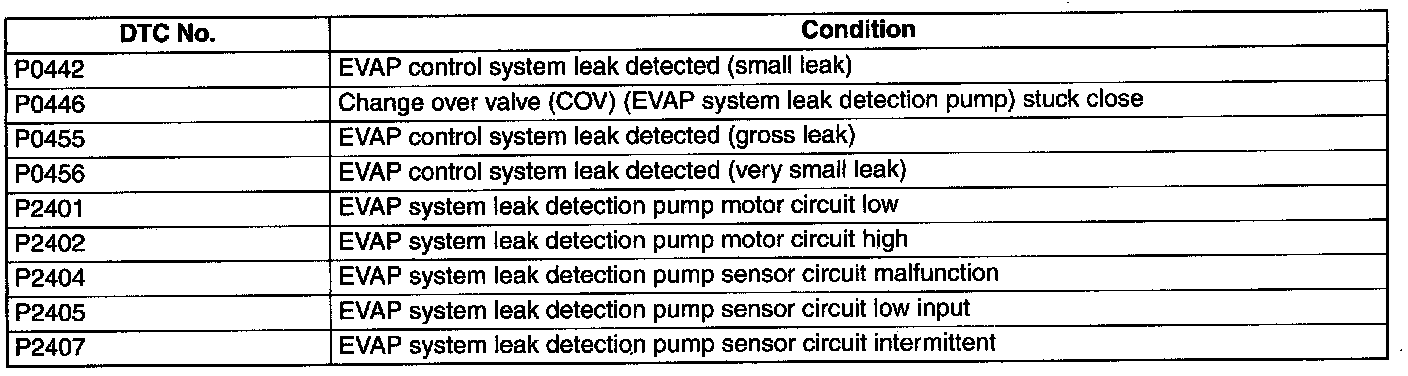 - The EVAP system test finds gas leaks in the system using the PCM to monitor changes in the air pump load current of the EVAP system leak detection pump. This test starts after sending an on-demand test signal from the M-MDS to the PCM. The PCM controls the air pump and change-over-valve operation and also stores the load current of the air pump as follows: