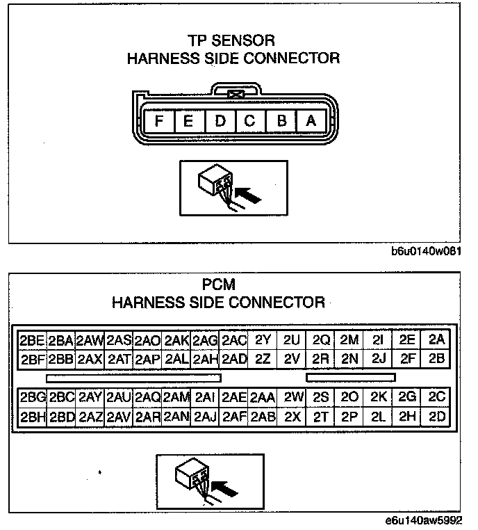 4. Verify that the PCM terminal 2AK and 2AL change smoothly while throttle valve is gradually opened.