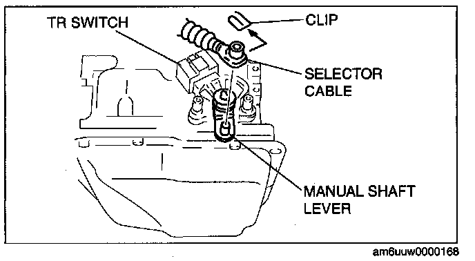3. Remove the clip and disconnect the selector cable.