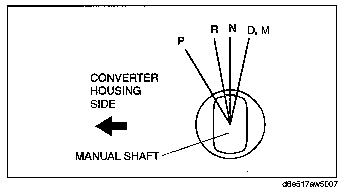 4. Rotate the manual shaft to the converter housing side fully, then return 2 notches to set the N position.