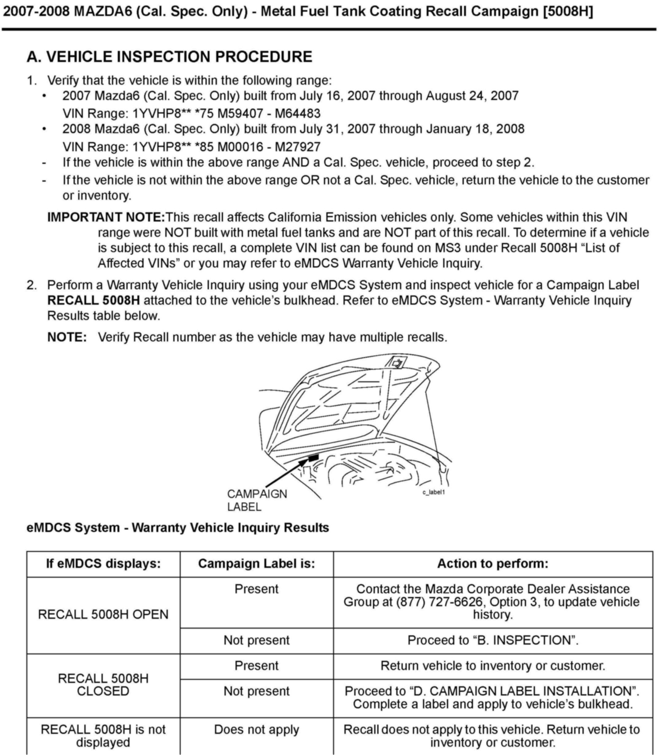 Recall - Fuel Tank Inspection/Replacement