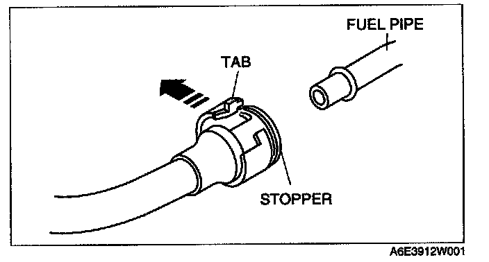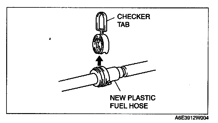NOTE: A checker tab is integrated with quick release connector for new plastic fuel hoses. The checker tab will be released from the quick release connector after it is completely engaged with the fuel pipe.