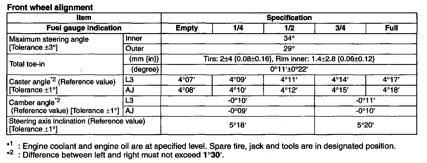 *1 : Engine coolant and engine oil are at specified level. Spare tire, jack and tools are in designated position.