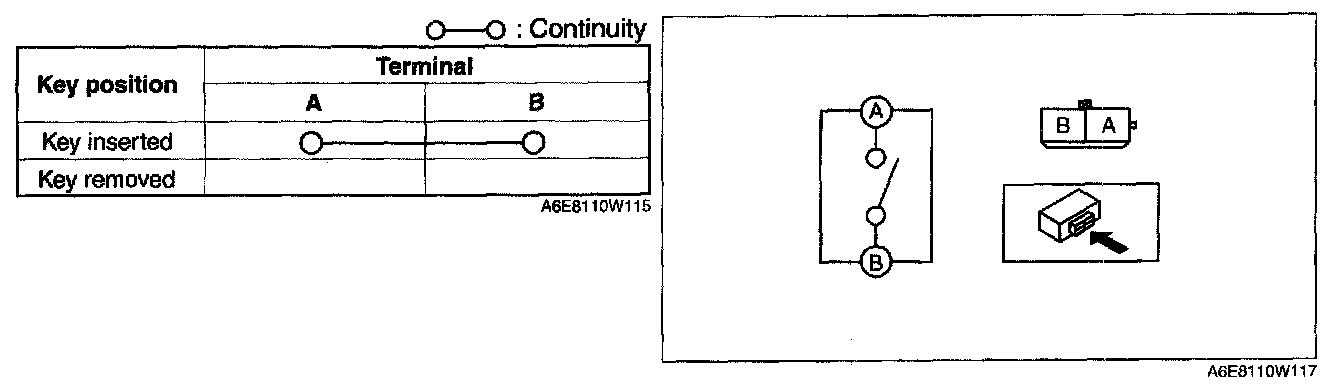 4. Inspect for continuity between the key reminder switch terminals.