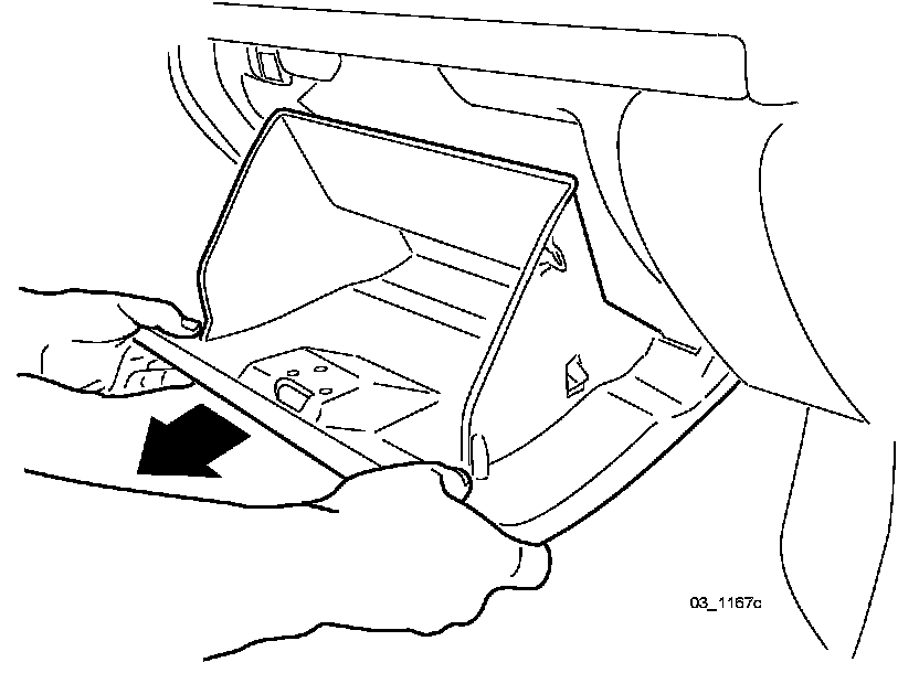 e. Gently pull the glove compartment toward you until the hooks come loose.