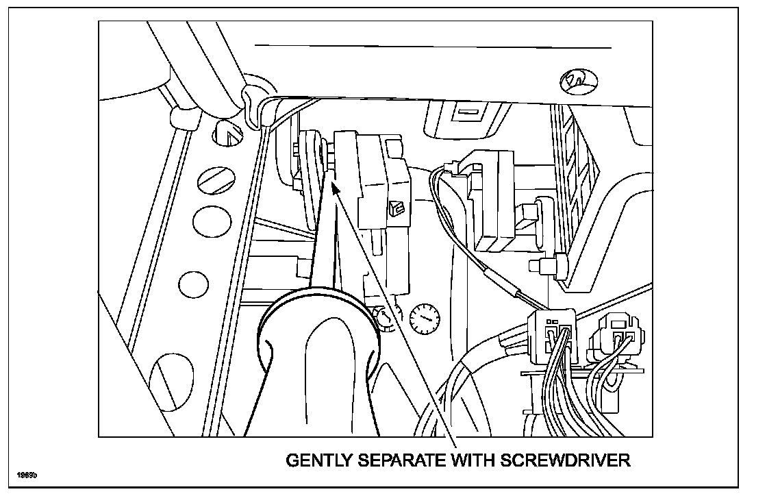 11. Attach actuator connector to new actuator and turn ignition to ON position. Wait for actuator to finish moving, then turn ignition to LOCK position.