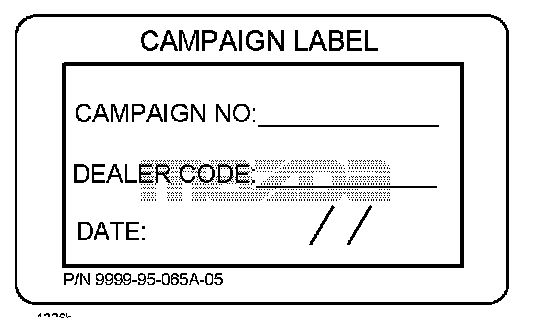 26. Fill out a blue "Campaign Label" (9999-95-065A-05) with the Campaign No: "MSP17", your dealer code, today's date, and affix it to the vehicle's hood.
