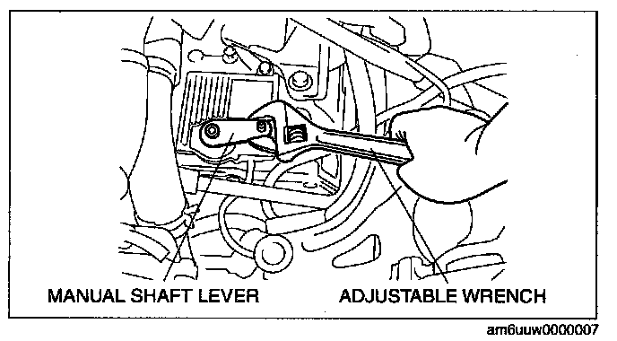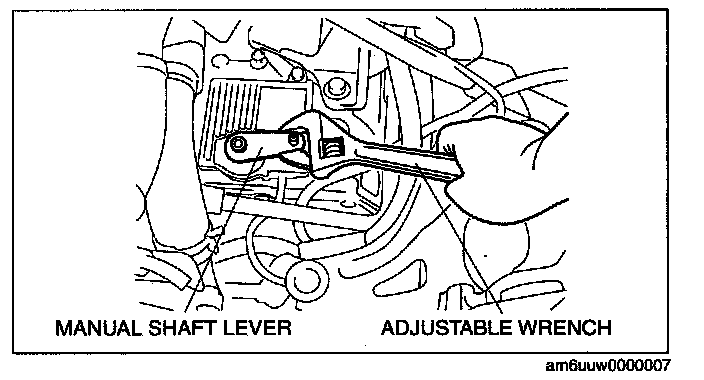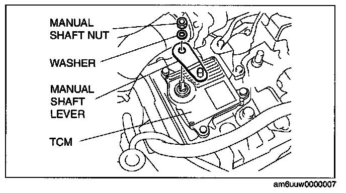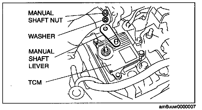 ^ Do not use an impact wrench. Hold the manual shaft lever when removing the manual shaft nut, or the transaxle may be damaged.