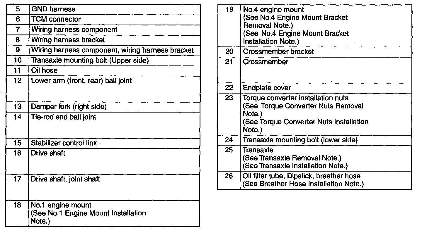 Transaxle Removal Note