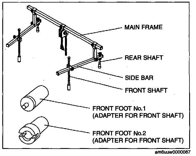 3) Install the left/right front shaft of the SST with front foot No.2 to the bolt as shown in the figure.