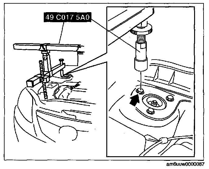 1) Install the right rear shaft of the SST to the bolt of the right shock absorber as shown in the figure.