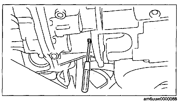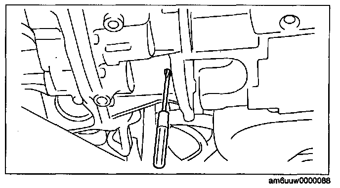 2. Insert a flathead screwdriver through the converter housing service hole, and lock the drive plate.