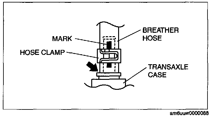 2. Install the hose clamp with in the marked area.