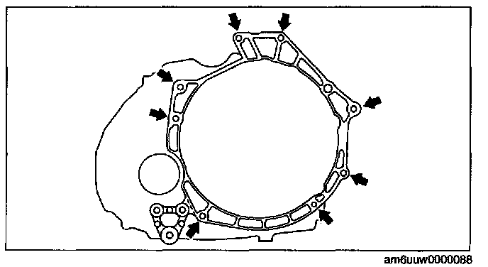 ^ Loosely and equally tighten the torque converter nuts, then further tighten them to the specified tightening torque.